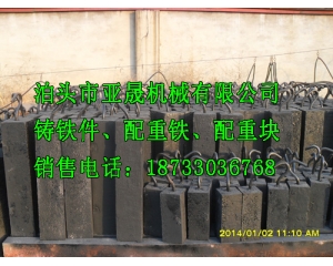 描述:配重鐵 配重鐵是用于增加自身重量來保持平衡的重物,是將噴丸機(jī)熔煉成符合一定要求的液體并澆進(jìn)鑄型里,經(jīng)冷卻凝固、清整處理后得到有預(yù)定形狀、尺寸和性能的鑄件的工藝過程。...